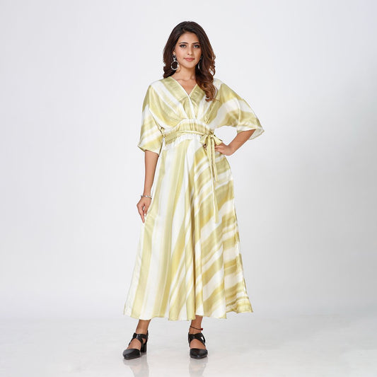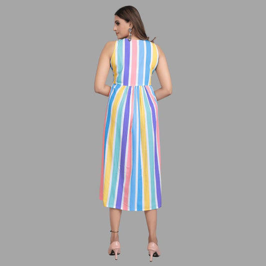 Versatile Stripe Harmony Crepe Mini Maxi Dress with Pockets