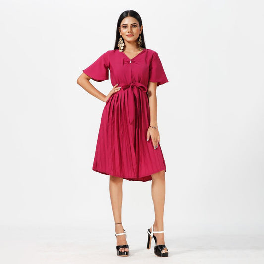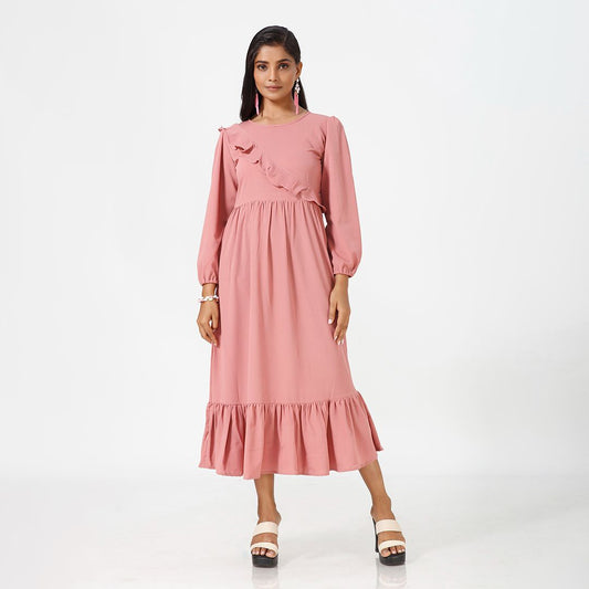 V-Neck Maxi Dress with Pleated Yolk and Cut-Out Details