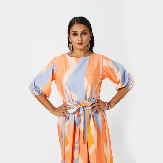 Glamorous Georgette Midi Dress with Lurex Butta and Chic Waist Belt