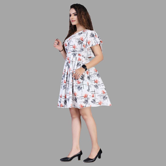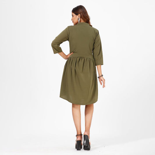 Chic High Neck Mini Dress in Crepe Fabric - Available in White and Green