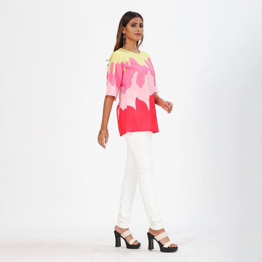 Elegant Crepe Top - Artistic Dripping Paint Design